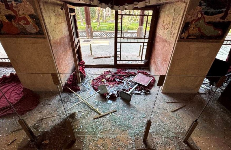 По опубликованным фотографиям видно, что многие залы оказались завалены обломками: выбиты окна, повреждены зеркальные мозаики айене-кари — сложная декоративная техника, недавно включенная в список нематериального наследия ЮНЕСКО.