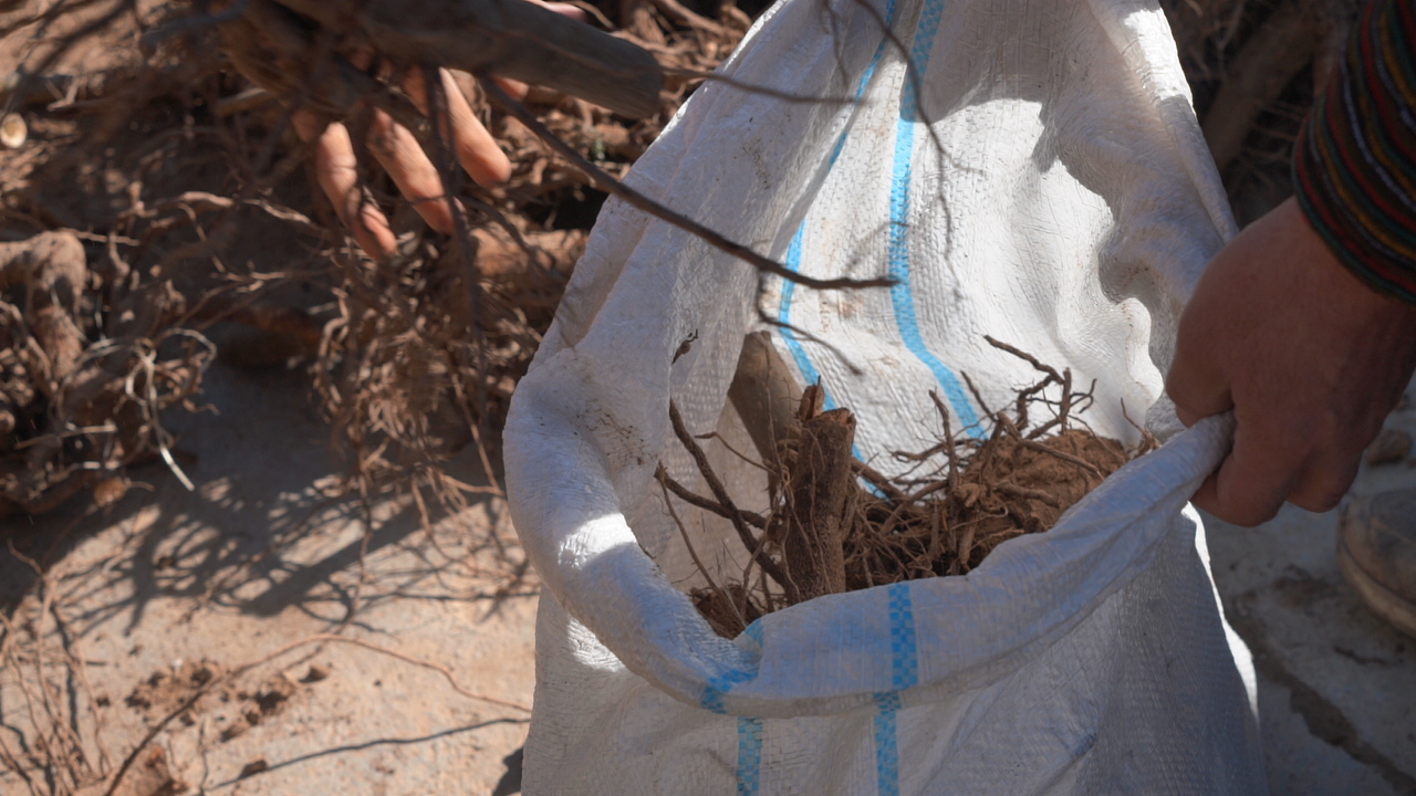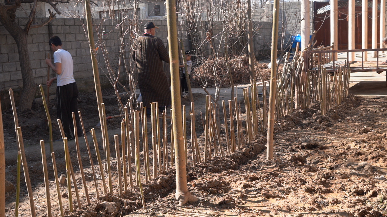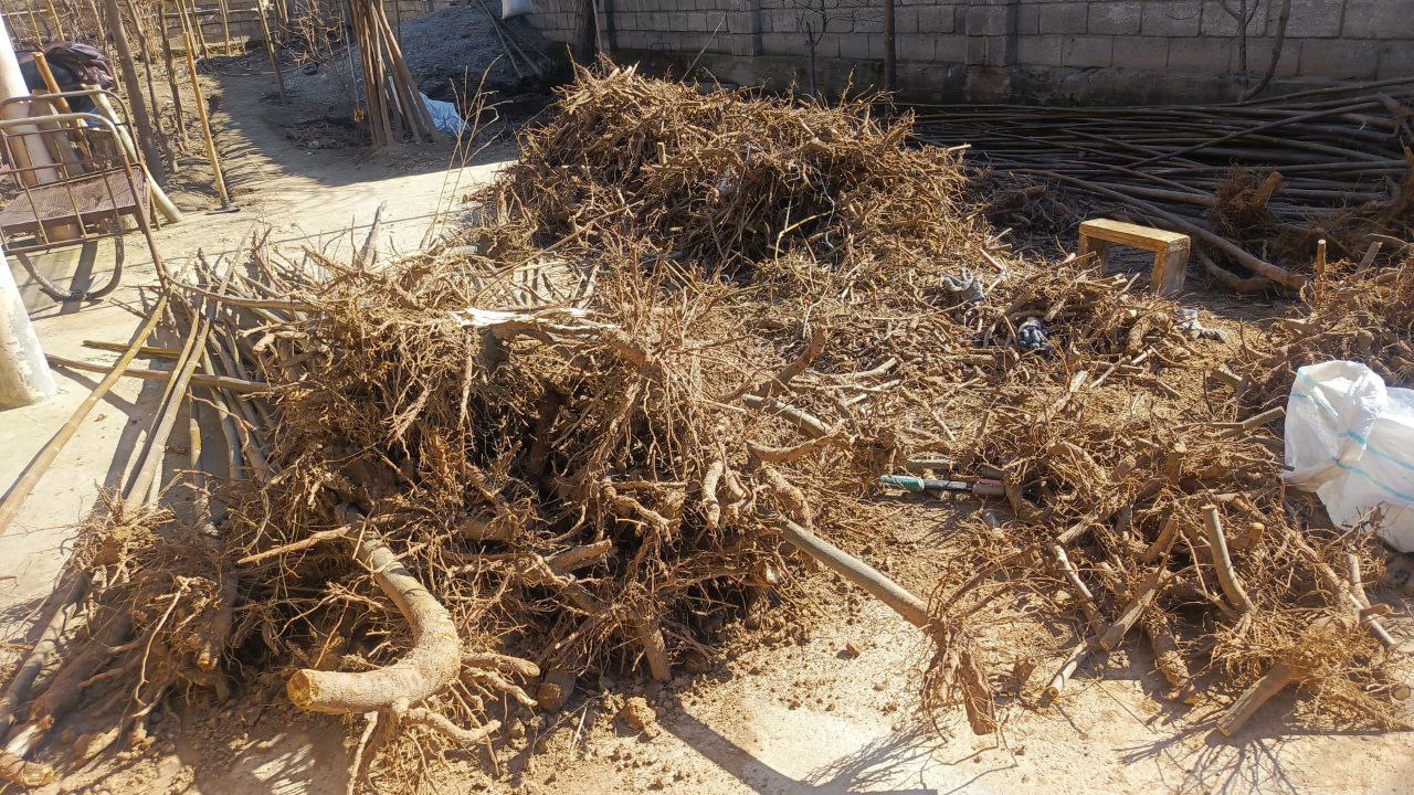 Двор у него небольшой — всего пару соток земли. По сему двору аккуратно разложены корни, собранные в мешках, черенки, связанные в пучки, и саженцы, отделённые от стволов.