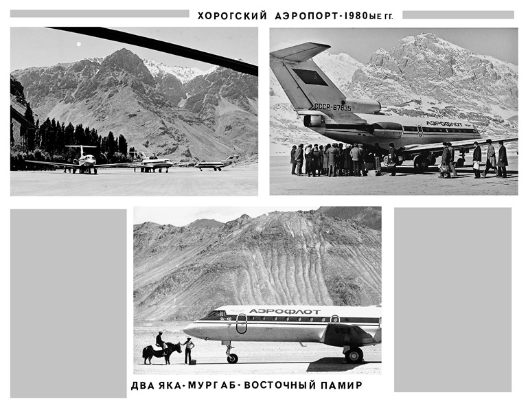 Вверху – хорогский аэропорт в 1980-е годы. Внизу – два яка на Восточном Памире. Аэропорт Мургаба