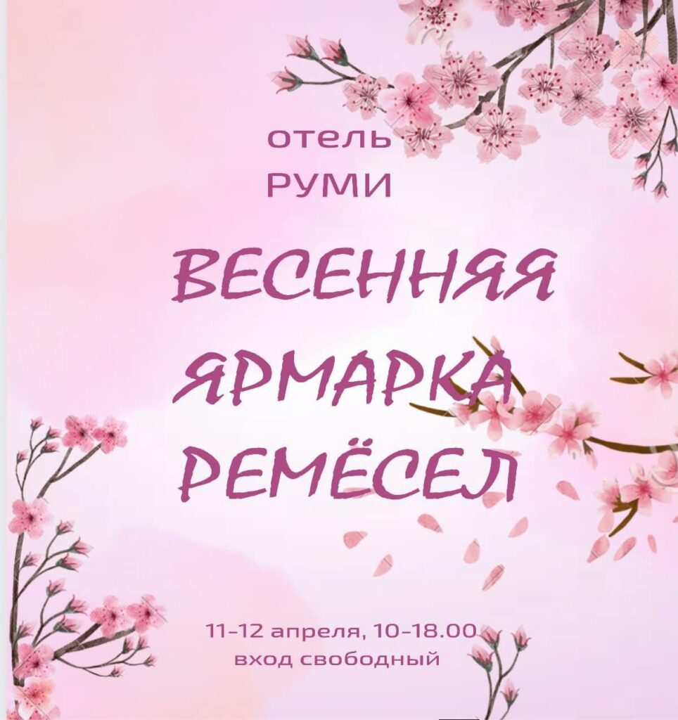 В отеле «Руми» 11 и 12 апреля с 10:00 до 18:00 пройдёт традиционная весенняя ярмарка ремесленников, куда съедутся лучшие мастера из Душанбе, Худжанда и Самарканда. Здесь будет представлен огромный ассортимент изделий из керамики, дерева, кожи, национальных тканей — адраса и атласа, национальная вышивка, вязаная продукция. А также коллекции от местных ювелиров и мастеров бижутерии, одежда с национальным колоритом, вкусная продукция — шоколад, пряники, зефир, фруктовая пастила и аксессуары (сумки, рюкзаки, тюбетейки) и многое другое.