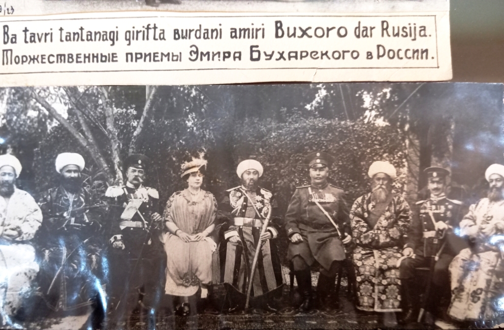 Там же — старинный диктофон, который весит около пяти килограммов — вместе с микрофоном. Отдельного внимания заслуживают редкие фотографии последнего Бухарского эмира Алим-хана и его чиновников и исторические карточки того периода.
