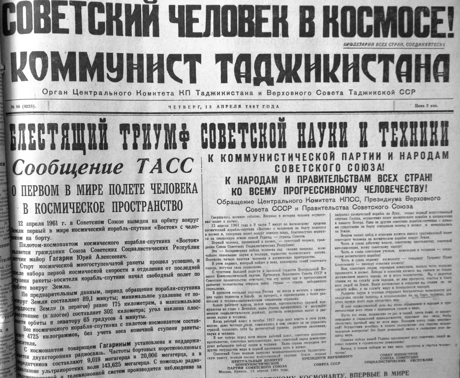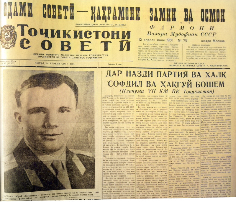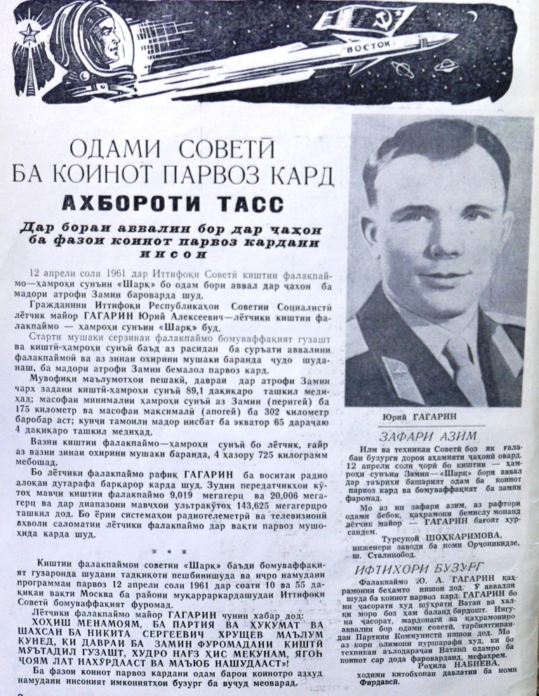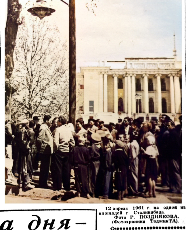 Жители Сталинабада узнали о полете Юрия Гагарина из сообщений по радио. Тогда же на многих предприятиях и в организациях прошли митинги, на которых выступающие с радостью отмечали, что наш советский человек первый в мире полетел в космос.