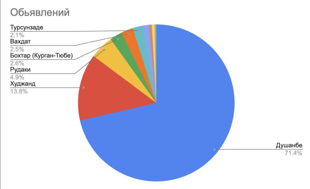 На втором месте — Худжанд, доля которого 13,8%, а далее: