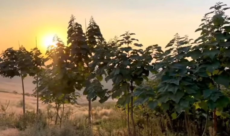 — Разные. Есть вяз, ива, тутовник, плодовые деревья, павловния. Вяз растёт плохо — в прошлом году какая-то болезнь объела листву, я видел, что по всему Узбекистану было то же самое. Ива во многих местах засохла — были проблемы с поливом. А павловния оказалась очень живучей и быстро растёт. Сейчас она у нас везде, а под ней — ива и тутовник. В этом году под павловнией сеем жёлуди дуба: когда дуб подрастёт в тени, павловнию срежем.