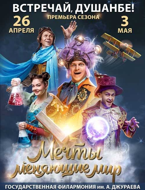 На сцене Государственной филармонии им. А. Джураева 26 апреля в 11:00 и 15:00 и 3 мая в 11:00 и 15:00 пройдёт семейный шоу-спектакль «Мечты, меняющие мир». Такое яркое событие для всей семьи станет первым в Таджикистане, обещают организаторы. Это шоу уже покорило миллионы сердец в соседних странах.