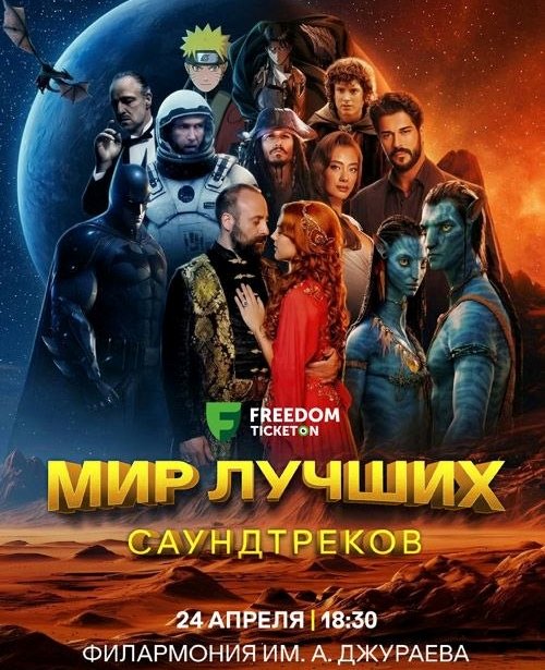 В Государственной филармонии им. А. Джураева 24 апреля в 18:00 состоится симфонический концерт «Мир лучших саундтреков». Вас ждет масштабное шоу с участием симфонического оркестра, хора и солистов, в сопровождении впечатляющего видеоряда на большом LED-экране. В программе — легендарные саундтреки, из таких киношедевров, как «Игра престолов», «Аватар», «Шерлок Холмс», «Бэтмен», «Интерстеллар», «Пираты Карибского моря», «Великолепный век», «Кара Севда», мультфильмов «Мадагаскар», «Кунг-фу Панда», «Как приручить дракона», аниме «Наруто», «Атака Титанов» и многих других. Вас ждет захватывающее музыкальное путешествие от космических просторов до волшебных королевств, воплощенное в живом исполнении симфонического оркестра.