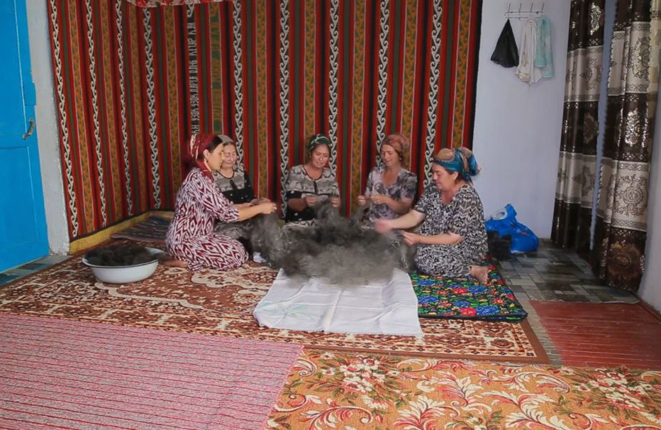 «Чтобы не болела спина, мы делаем специальные курпачи, набитые ангорской шерстью, — рассказывает Ульфатой. — Также добавляем эту шерсть при вязании дорожек. Такие подстилки под ноги — очень хорошая защита от сквозняков и холодных полов, особенно зимой. В нашем селе нет ни одной женщины, которая бы просто так сидела дома. Даже если нет ангорской шерсти, используется обычная овечья шерсть».