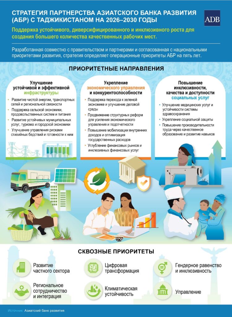 С момента вступления Таджикистана в АБР в 1998 году Банк предоставил почти $3 млрд в виде помощи для развития, став одним из крупнейших многосторонних партнеров страны.