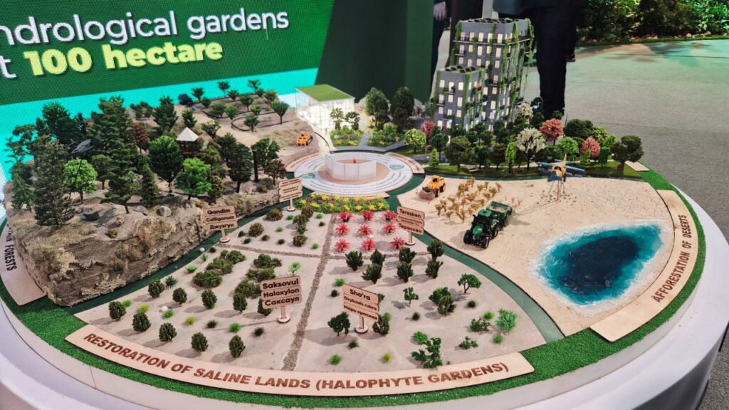 Инициатива «Зелёный щит». Одна из важных панелей была посвящена инициативе резолюции «Зелёный щит Центральной Азии», включая создание лесных поясов и зелёных барьеров, предотвращение деградации земель, снижение пыльных бурь, восстановление экосистем. Эта инициатива направлена на формирование системы защитных лесных поясов и зелёных барьеров, которые могут снизить эрозию почв, остановить движение песков и улучшить местный климат.