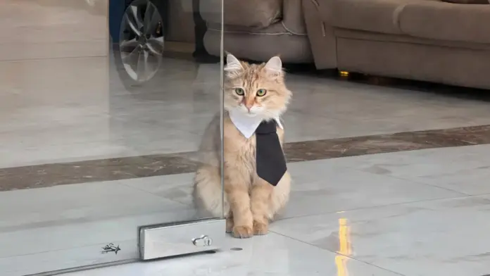 В одном из отелей Ташкента появился необычный «сотрудник» — пушистый кот в воротничке и галстуке. По словам гостей, по вечерам он выходит в лобби и словно встречает посетителей.