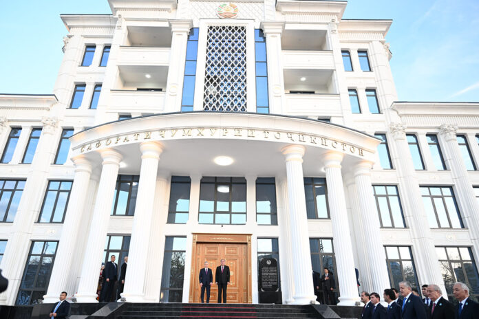 В рамках государственного визита в Узбекистан президент Эмомали Рахмон и его коллега Шавкат Мирзиёев 26 марта приняли участие в церемонии открытия нового здания посольства Таджикистан в Ташкенте.