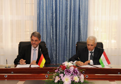 DUSHANBE, October 11, 2013, Asia-Plus – The Tajik MFA information department reports that a ceremony of exchange of the Note Arrangement between the Government of Tajikistan and the Government of the Federal republic of Germany on mutual assistance for enhance cooperation in Central Asia in the area of use of limited water resources took place in Dushanbe on October 10.