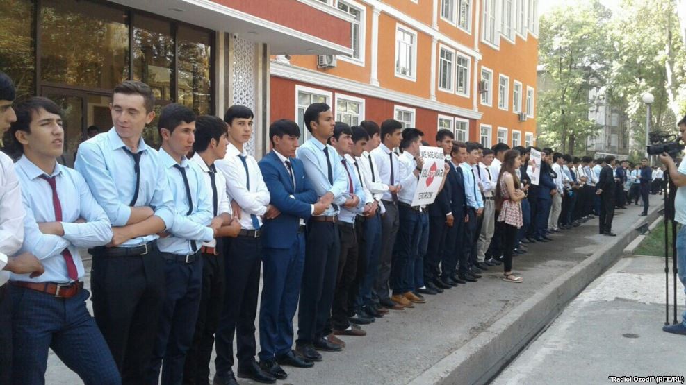Today is the third day since pro-government university students in Tajikistan have carried out actions of protest against the presence of Tajik opposition and rights activists at the Warsaw conference.