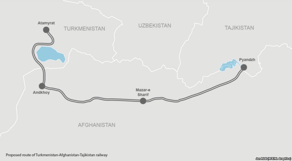 The 400-kilometer railroad is expected to connect the Afghan town of Akina-Andkhoy to Atamurat-Ymamnazar in Turkmenistan and Panj in Tajikistan.