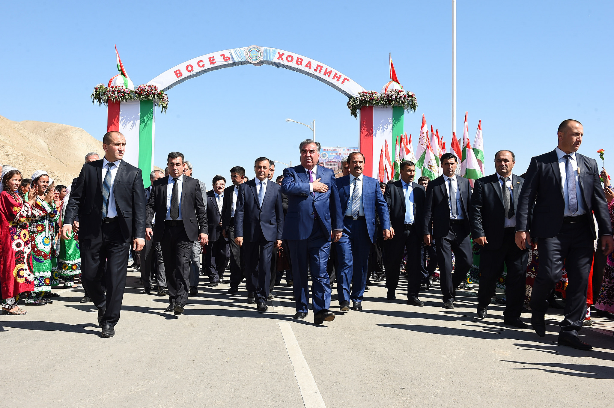 President Emomali Rahmon yesterday participated in a ceremony of an official opening of the first section of the road connecting Vose and Khovaling districts in Khatlon province.