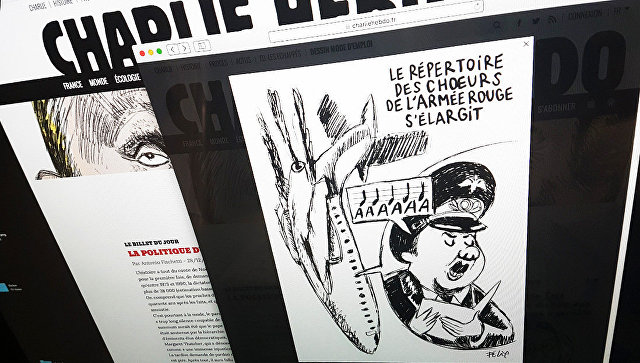 Russian officials were incensed Wednesday by a Charlie Hebdo caricature of the fatal Tu-154 plane crash over the Black Sea, showing the plane falling as a member of the Alexandrov military choir screams. The cartoon’s caption reads: “The repertoire of the army choir is expanding.”