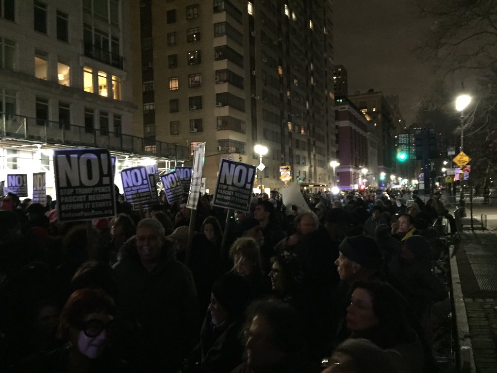 U.S. media reports say the anti-Trump demonstration took place in New York yesterday just a half-mile from Trump Tower.