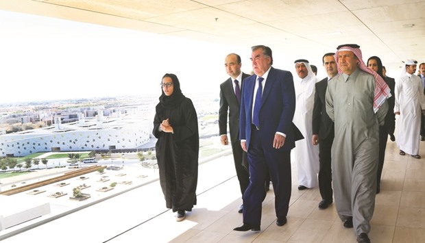 Tajikistan President Emomali Rahmon yesterday visited the Qatar Foundation for Education, Science and Community Development (QF) in Doha.