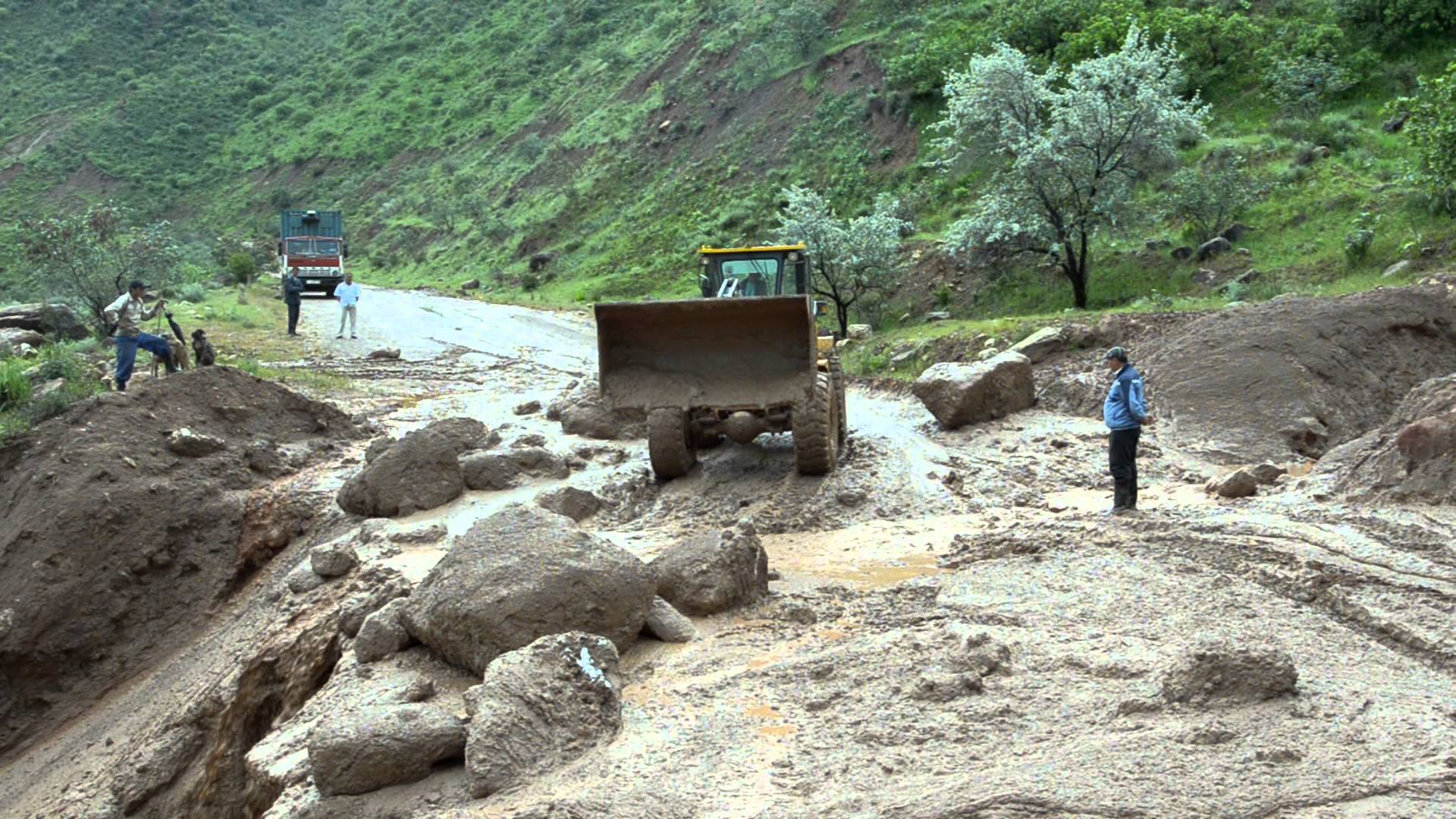 Torrential rains on June 27 caused mudflows that damaged roads in the Shahriston district.