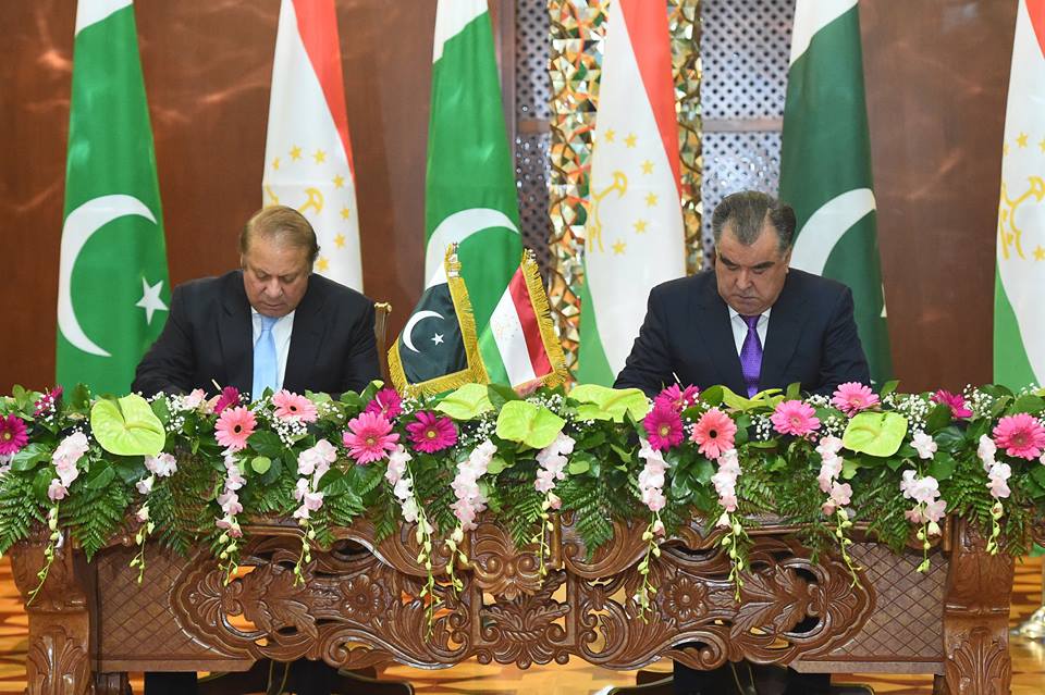 Tajik President Emomali Rahmon and Pakistani Prime Minister Nawaz Sharif signed a joint declaration entitled “Road towards Strategic Partnership for Regional Solidarity.”