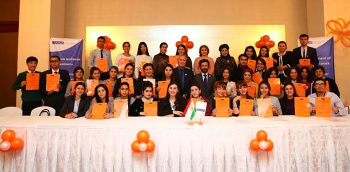 Vesna Ivanovikj-Castarede, Gender and Anti-Trafficking Officer at the Programme Office said: “We chose to establish a network of 45 motivated young adults during the 16 Days of Activism against Gender-based Violence campaign and we handed out orange certificates to symbolize a better future without violence, for all women and girls. These young people will have a big role in creating a future of equal opportunities for all. In addition, the 15 young men from this network will join Tajikistan’s MenEngage network – the OSCE-supported network that is aimed at engaging men and boys in preventing and combating violence against women.”