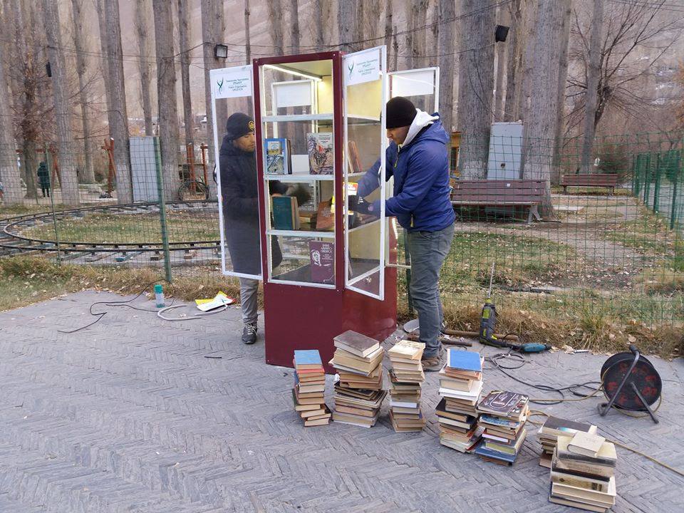 The idea to manufacture street bookcases with built in USB ports has been initiated by Zohir Shomusallamov, the head of Khorog-based NGO “Umedvor.”
