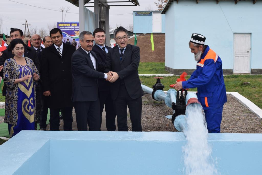 On February 21, Mr. Nakagaki visited Qubodiyon district and together with Mr. Zafar Fayzullozoda, chairperson of Qubodiyon district participated in the handover ceremony of “The Project for Improvement of Drinking Water System in Qubodiyon District.” Grant amount of USD 84,216 was allocated to the local authority of Qubodiyon district with the purpose of renovating pump stations and water pipeline system for provision of drinking water to dwellers of Qubodiyon town.