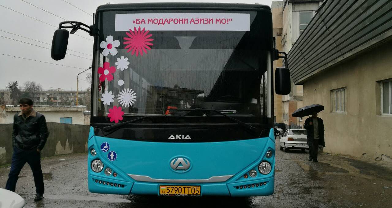 On the occasion of the Day of the Mother, Asia-Plus and Obi-Zulol today launched a festive action “Modaroni Dushanbe” (Mothers of Dushanbe). A festively decorated bus will carry women along route 3 free of charge. Besides, various gifts and surprises are waiting for them.