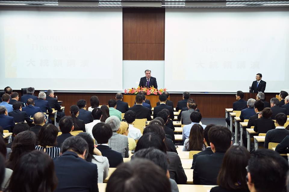 President of Tajikistan arrived today from Kyoto in Tokyo as part of his official visit to Japan. Here he visited the University of Tsukuba, and spoke with the rector Kyosuku Nagata, with teachers and students of the university.