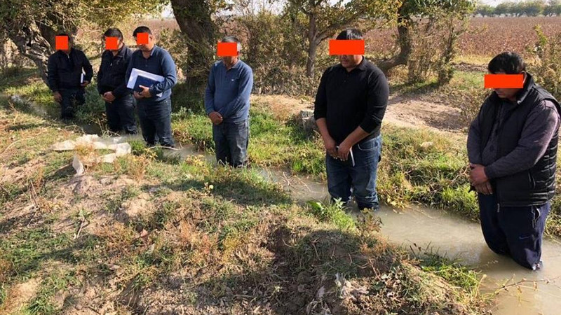 A widely circulated photo on October 27 showed local officials and six farmers in Akkurgan district of Tashkent region being humiliated by being forced to stand in water-filled ditch as an official behind the camera berated them. It turned out later that deputy head of Akkurgan district forced them to stand in the ditch for not properly irrigating wheat fields, according to Ferghana news agency. The photo was reportedly taken on October 25.