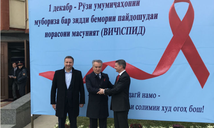 Mr. Kevin Covert, Chargé d’Affaires of the United States Embassy in Dushanbe, joined the Minister of Health and Social Protection of Tajikistan Nasim Olimzoda and other high-level government officials at the 2018 World AIDS Day event to help raise awareness about HIV in Tajikistan and around the world.