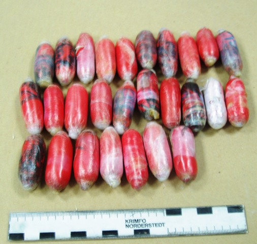 X-rays reportedly showed that the peddler had ingested 38 wraps of narcotic drug that tested positive to heroin weighing 542 grams.