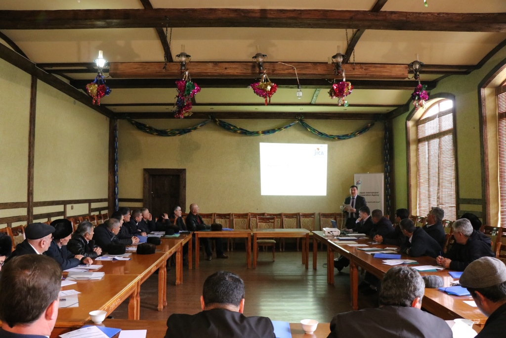 On January 31, 2019, ex-participants of training courses in the field of agriculture and irrigation, with the support of the JICA office held a seminar on the theme “Activities of Agricultural Cooperatives and Water Users’ Association with Regards to Experience of Japan” in Vose district, Khatlon province.