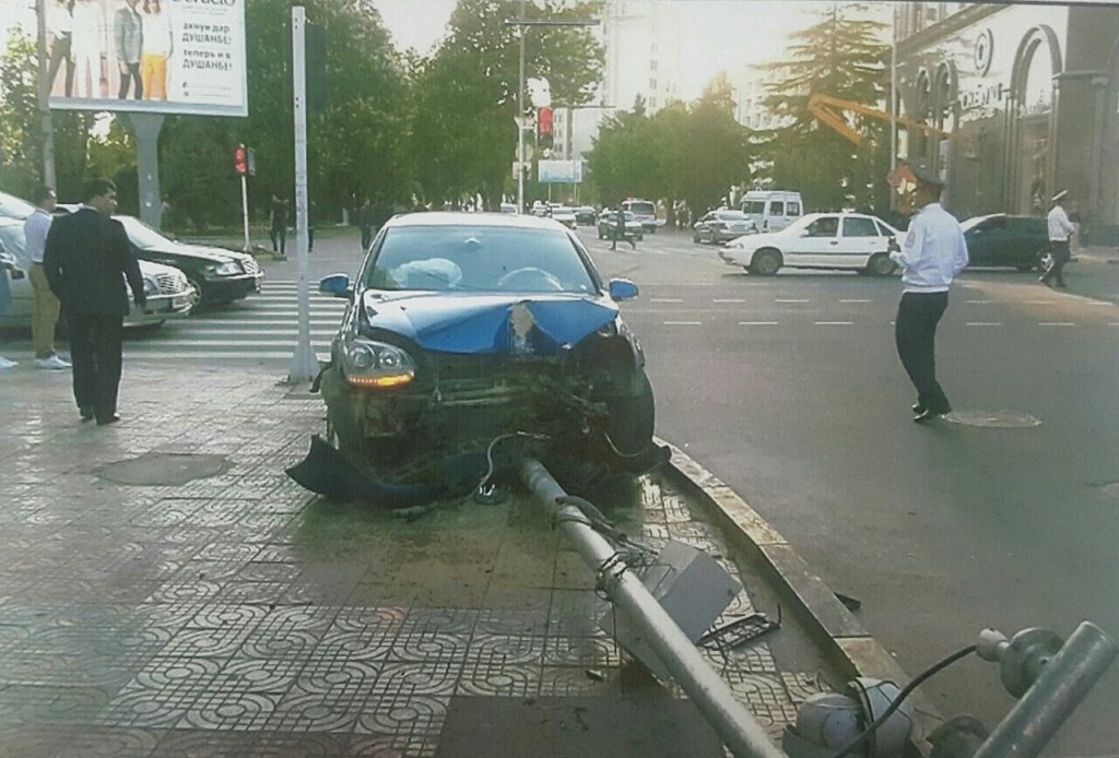 According to the press center of the Dushanbe Police Directorate, the driver – Farrukh Karimov, 28 – apparently lost control of his car and it crashed into the traffic light pole. Karimov did not suffer any injuries.