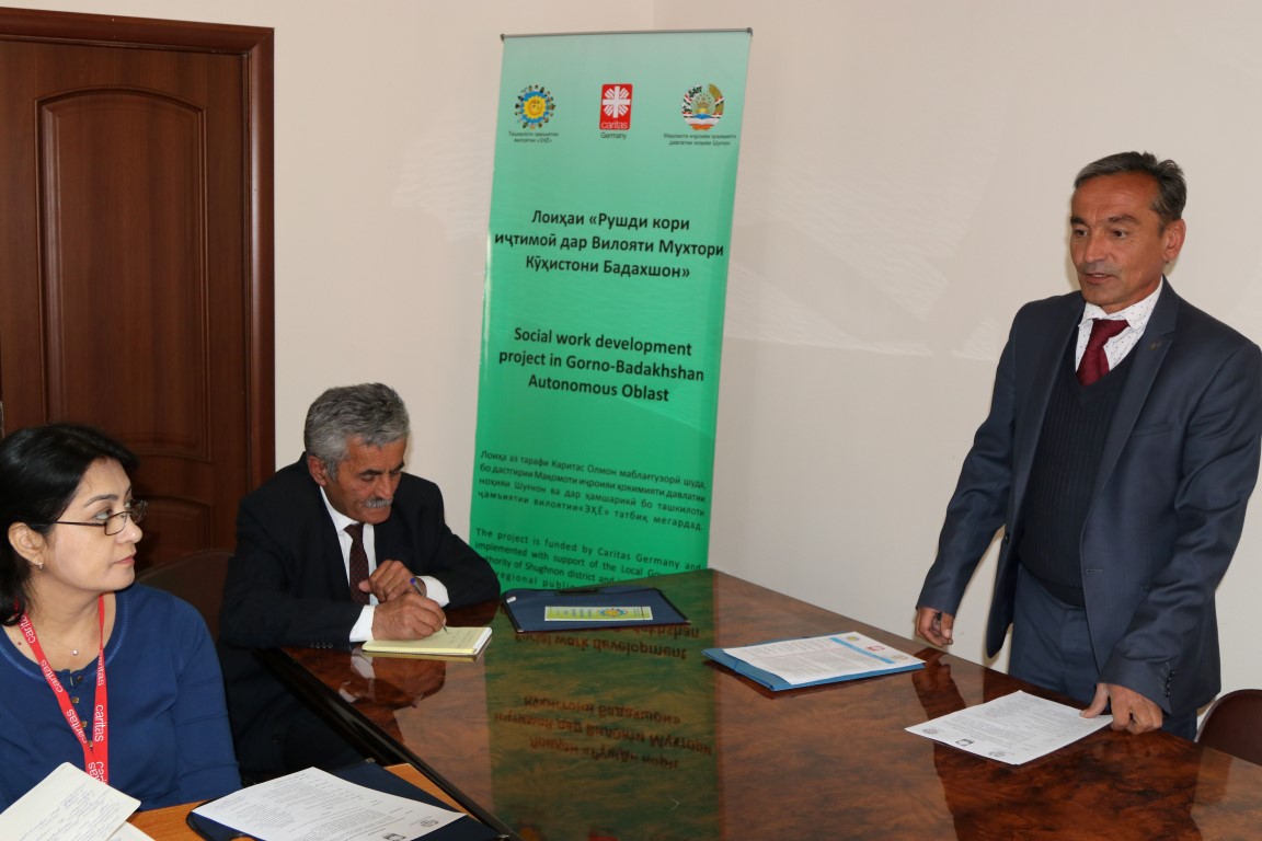 The Branch of the German Caritas Association in Tajikistan (CARITAS) announced the launch of its new one-year Social Work Development Project in Gorno-Badakhshan Autonomous Region (GBAO) that will operate in all 7 jamoats (Porshinev, M. Shirinjonov, Suchan, Navobod, Gh. Shabozov, Ver and Vanqala) of Shugnan district.