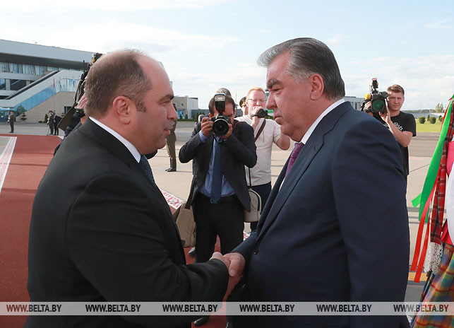 According to Belarusian news agency BelTA, Deputy Prime Minister of Belarus, Igor Lyashenko, and First Deputy Minister of Foreign Affairs of Belarus, Andrei Yeudachenka, welcomed Tajik leader on arrival.