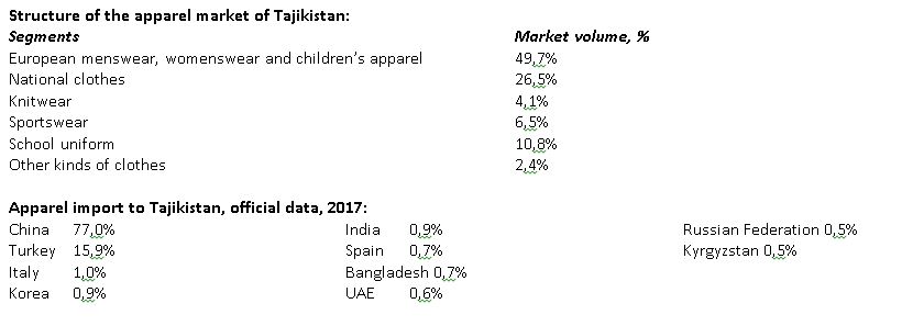 Apparel sector of Tajikistan has immense potential for creating new jobs and increasing export volume. Population growth and increased income will result in development of the market, especially expensive apparel segment’s volume and rising consuming culture.