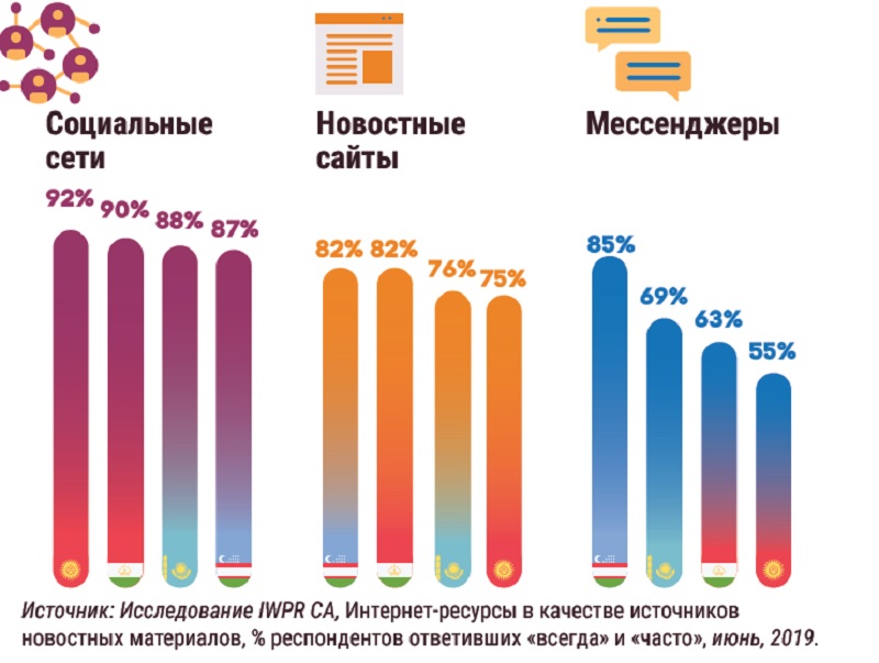 Social networking sites lead as a source of information in Central Asia and messengers are gaining popularity as a source of information in the region, according to a survey conducted by the Institute for War and Peace Reporting (IWPR).