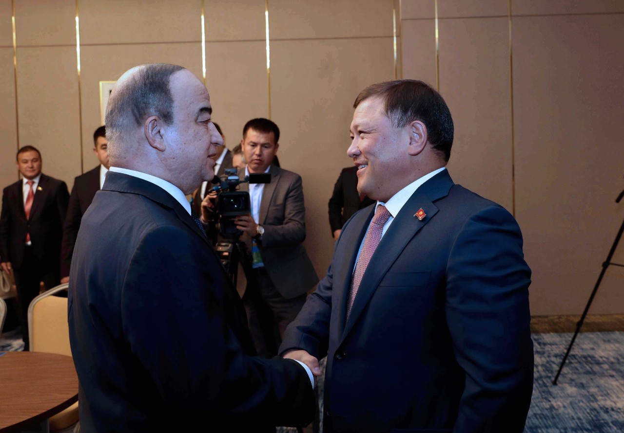 Shukurjon Zuhurov, Chairman of Tajikistan’s lower chamber (Majlisi Namoyandagon) of parliament (Majlisi Oli), met with Dastanbek Jumabekov, Head of Jogorku Kenesh (Kyrgyzstan’s unicameral parliament), in the Kazakh capital of Nur-Sultan on the sidelines of the Fourth Meeting of Speakers of the Eurasian Countries' Parliaments that took place in the Kazakh capital on September 23-24.