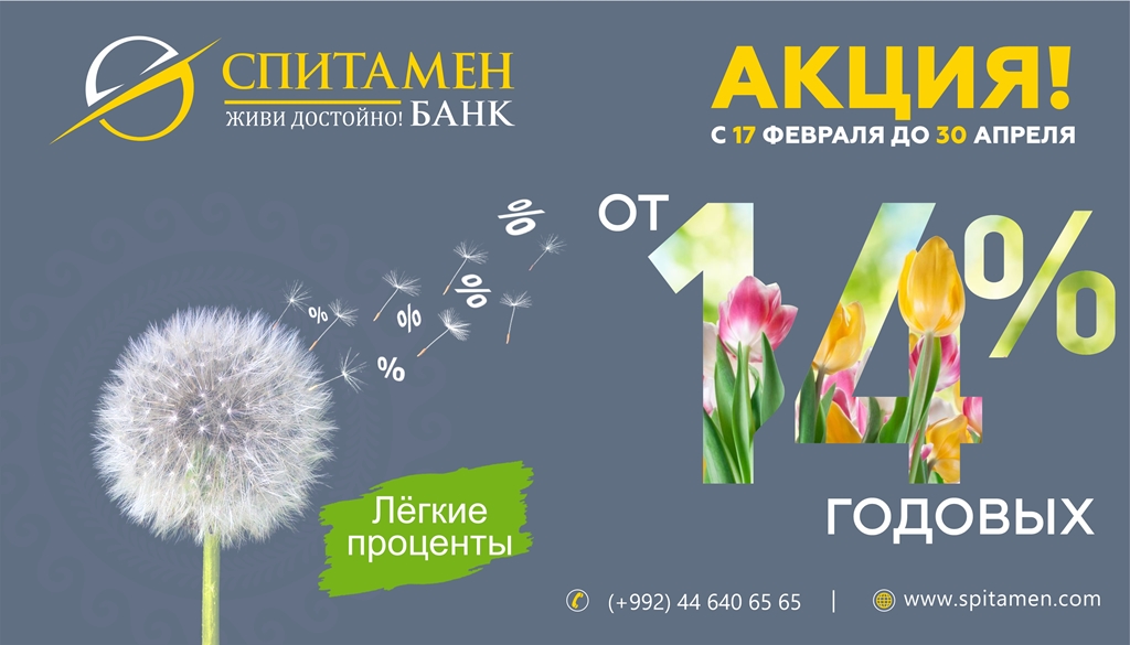 Closed Joint-Stock Company (CJSC) Spitamen Bank has launched an action “Light Interest Rates.” The action will be valid until April 30, 2020.