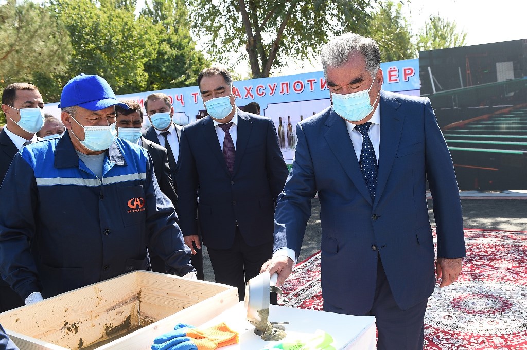In the village of Mekhrobod Jabbor Rasulov district, Emomali Rahmon laid the foundation stone and started construction work at the glass and glassware production company “Sughd Quartz” OJSC.