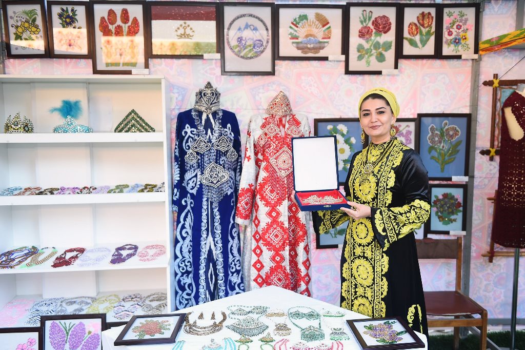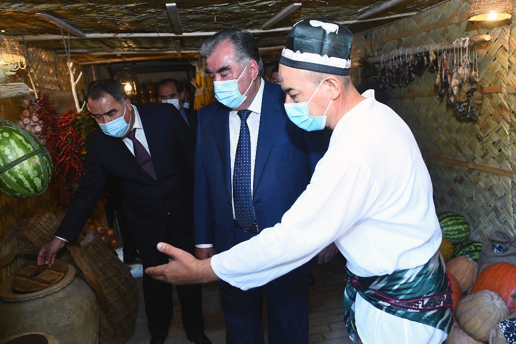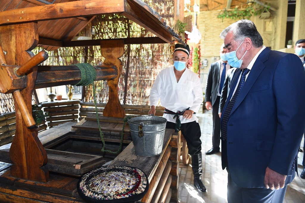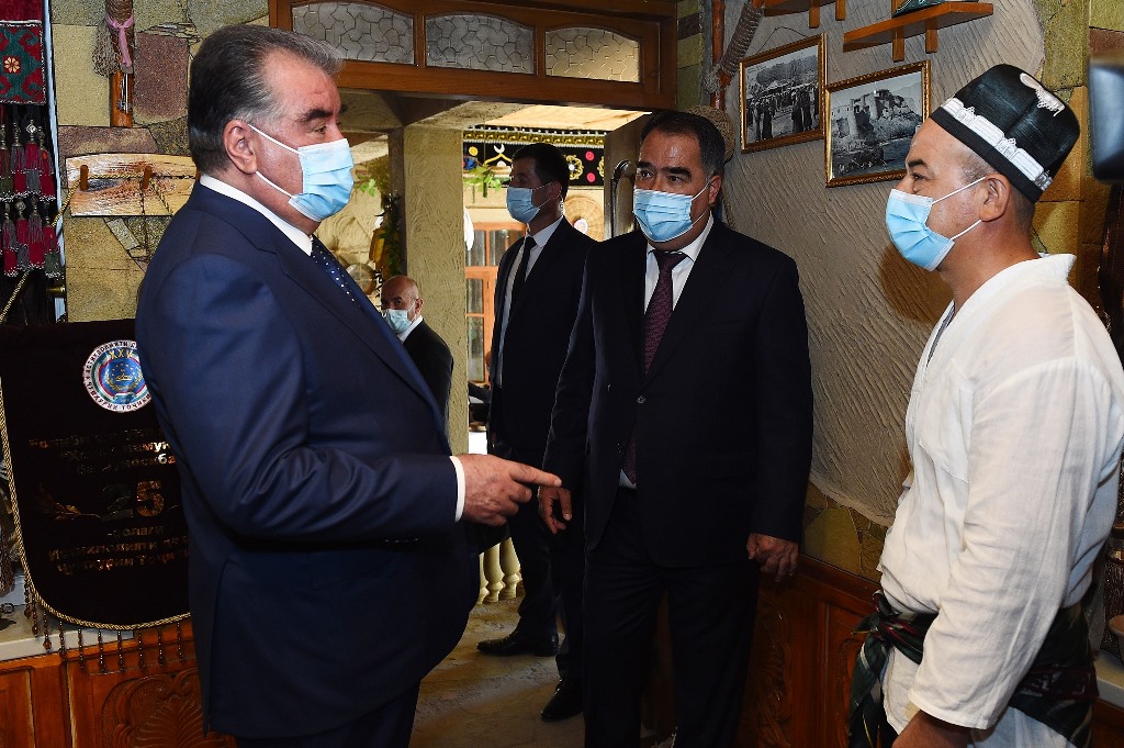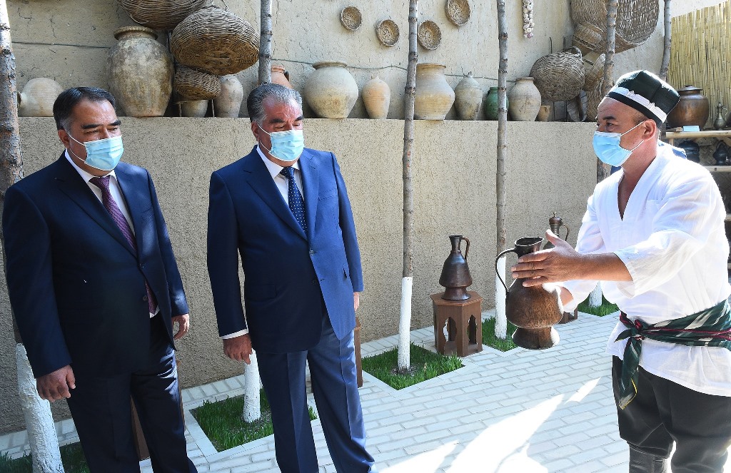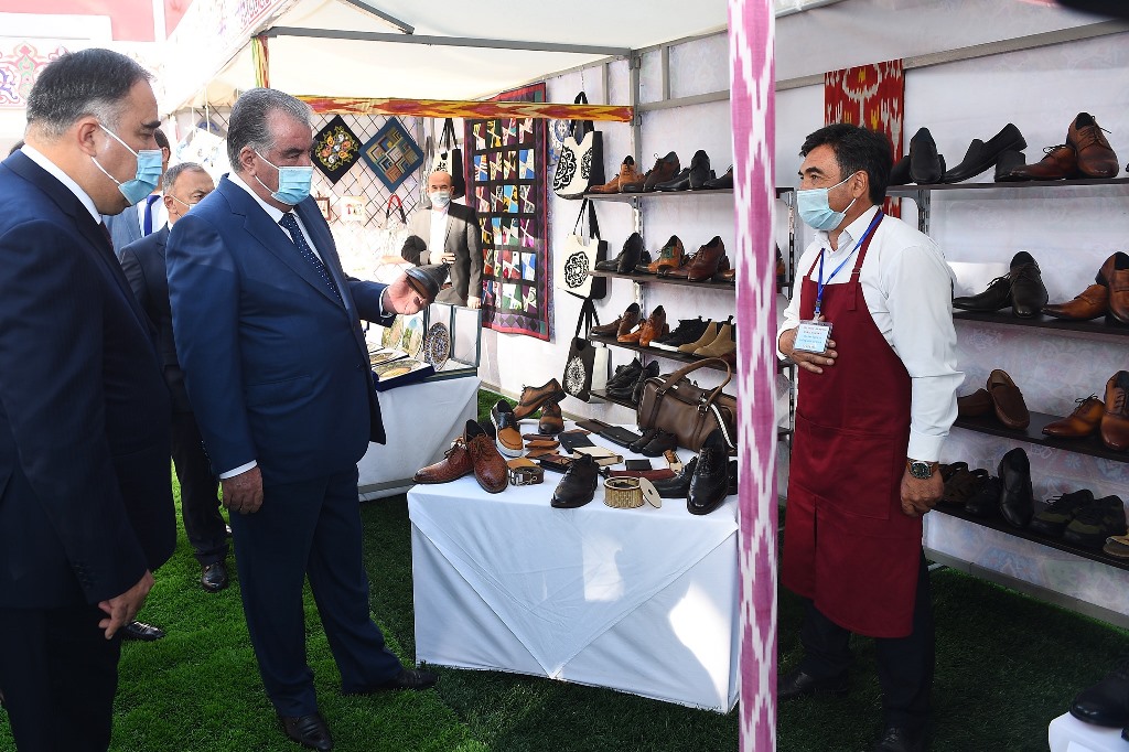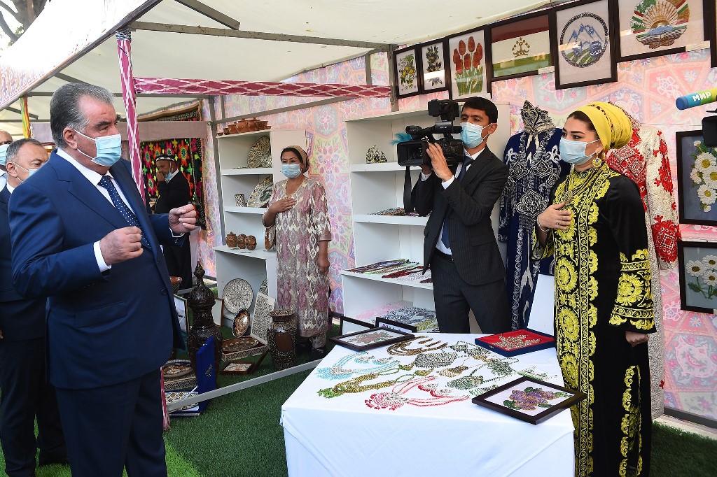 There, on the territory of the workshop, he visited an exhibition of products manufactured by this workshop: school uniforms, medical gowns, protective masks, sterile fabrics and clothing for surgical operations and an exhibition of folk crafts, where the works of masters of Khujand, Buston, Guliston and Bobojon Ghafurov district were presented.