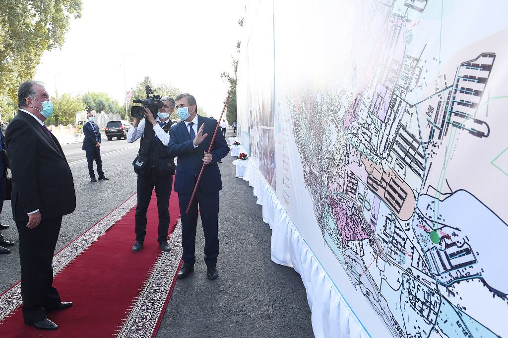 Further, the head of state got acquainted with the progress of the reconstruction of the road, watched the presentation of the first stage of the project to provide the population of Kulyab with drinking water and projects for the disposal of solid household waste.