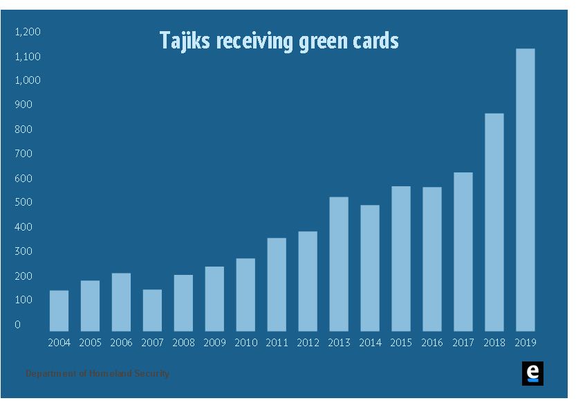 According to the most recent statistics available from the U.S. Department of Homeland Security, over the past 16 years, about 7,300 people born in Tajikistan have received green cards.