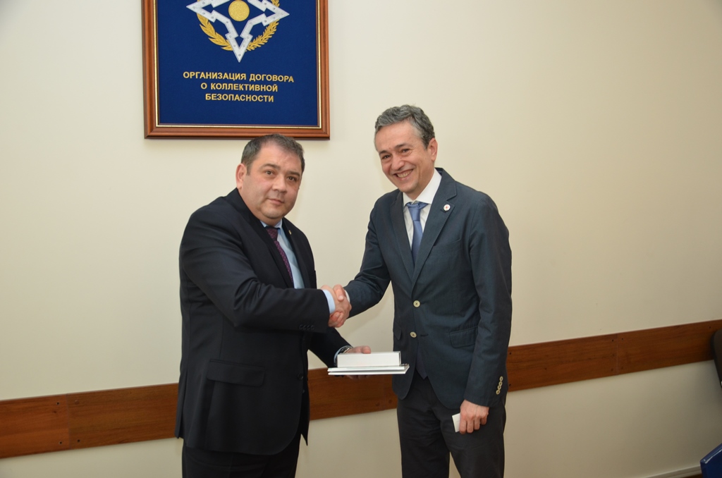 According to the CSTO press center, the two sides discussed the progress of implementation of the plan of cooperation between the CSTO and the ICRC.