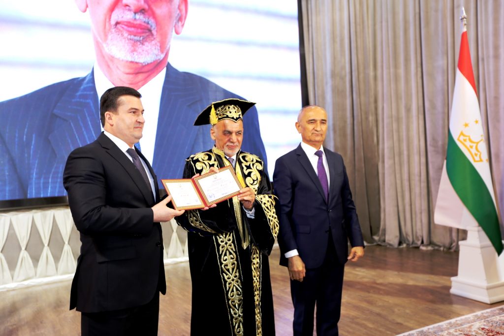 Afghan President Mohammad Ashraf Ghani has been awarded a title of Honorary Doctor of Tajik National University.