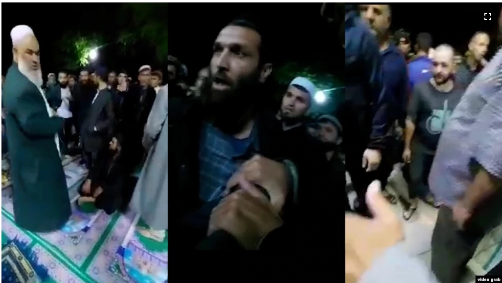 Footage shared on social media appears to show Nematzoda arguing with one of the worshipers and using foul language in front of a large group of men.