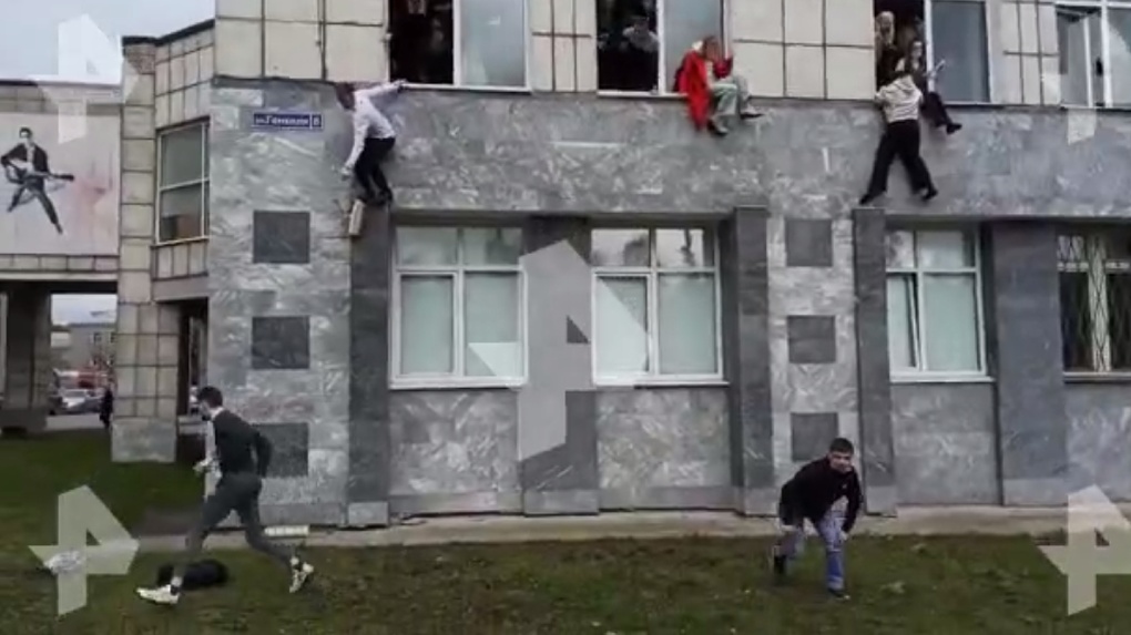 People jump from windows and lock themselves in rooms as university student in Perm carries out attack, killing at least eight.