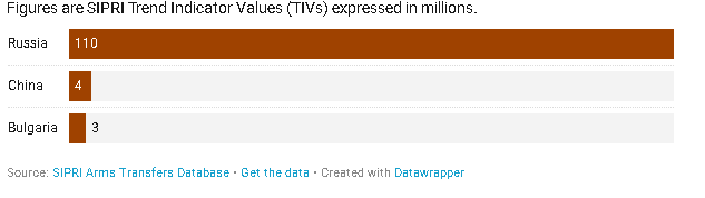 In the table below, one can see that Tajikistan receives arms imports from a very limited number of countries. Russia owns 110 (TIV), while China has only 4 (TIV) and Bulgaria has 3 (TIV) since 1991. As one can see, Russia has been a leader in the import of weapons in Tajikistan and Kyrgyzstan since 1991. Russian scientist, political scientist, and orientalist Vasily Kashin argues that “this is mainly due to the fact that the countries are members of the CSTO and receive Russian weapons at significantly reduced prices.” He also noted that “unlike Kazakhstan, countries such as Tajikistan and Kyrgyzstan have limited arms procurement opportunities. They mainly receive it in the form of assistance, and here the main source is again Russia.”