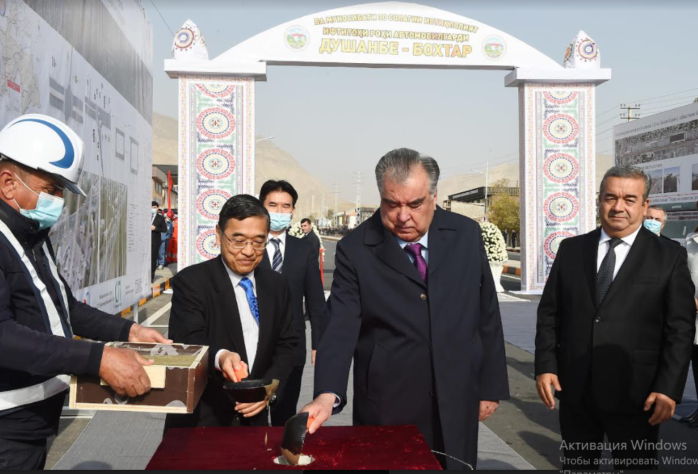 On Friday October 29, Japan’s Ambassador Extraordinary and Plenipotentiary to Tajikistan Takayuki Miyashita together Tajik President Emomali Rahmon attended the groundbreaking ceremony of the project for “Rehabilitation of Qizilqala-Bokhtar Section of Dushanbe-Bokhtar Road” that took place in Obi Kiik, administrative center of Khuroson district, Khatlon province.